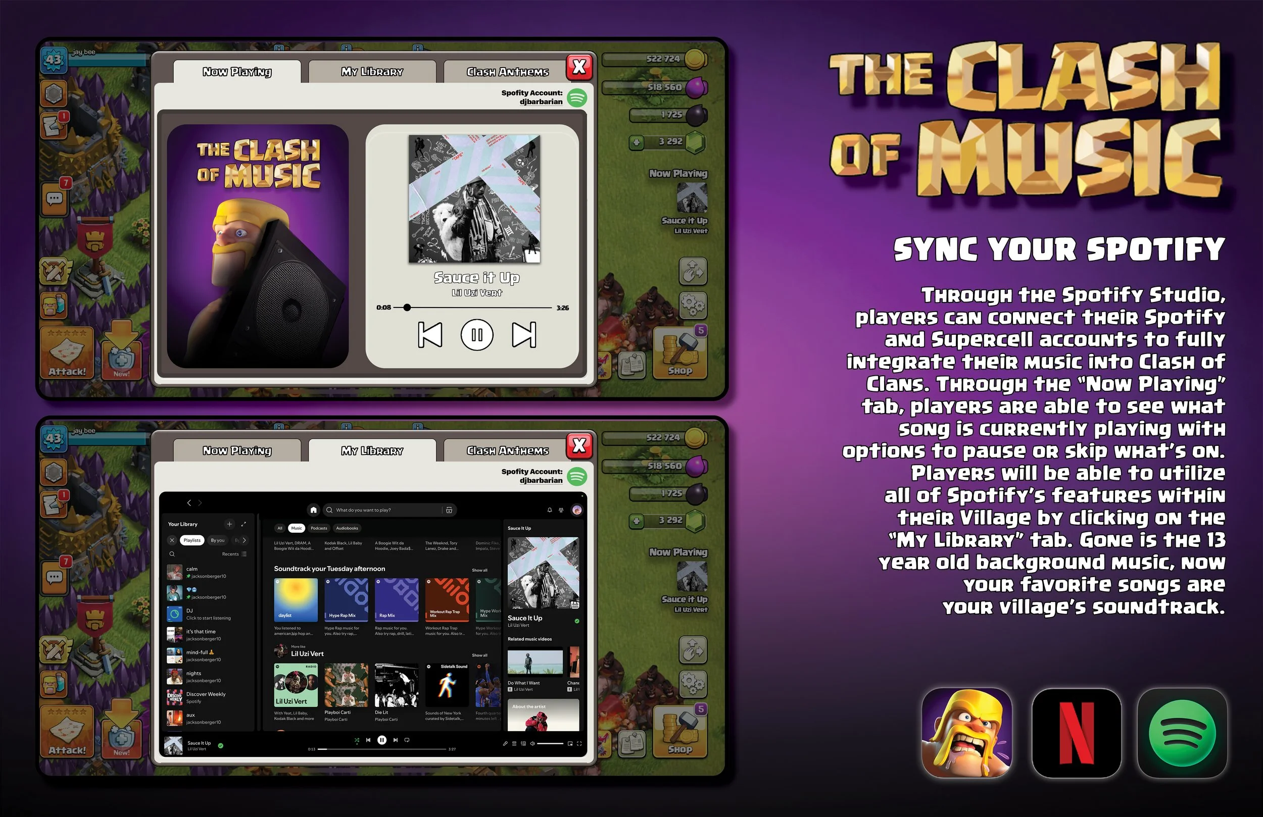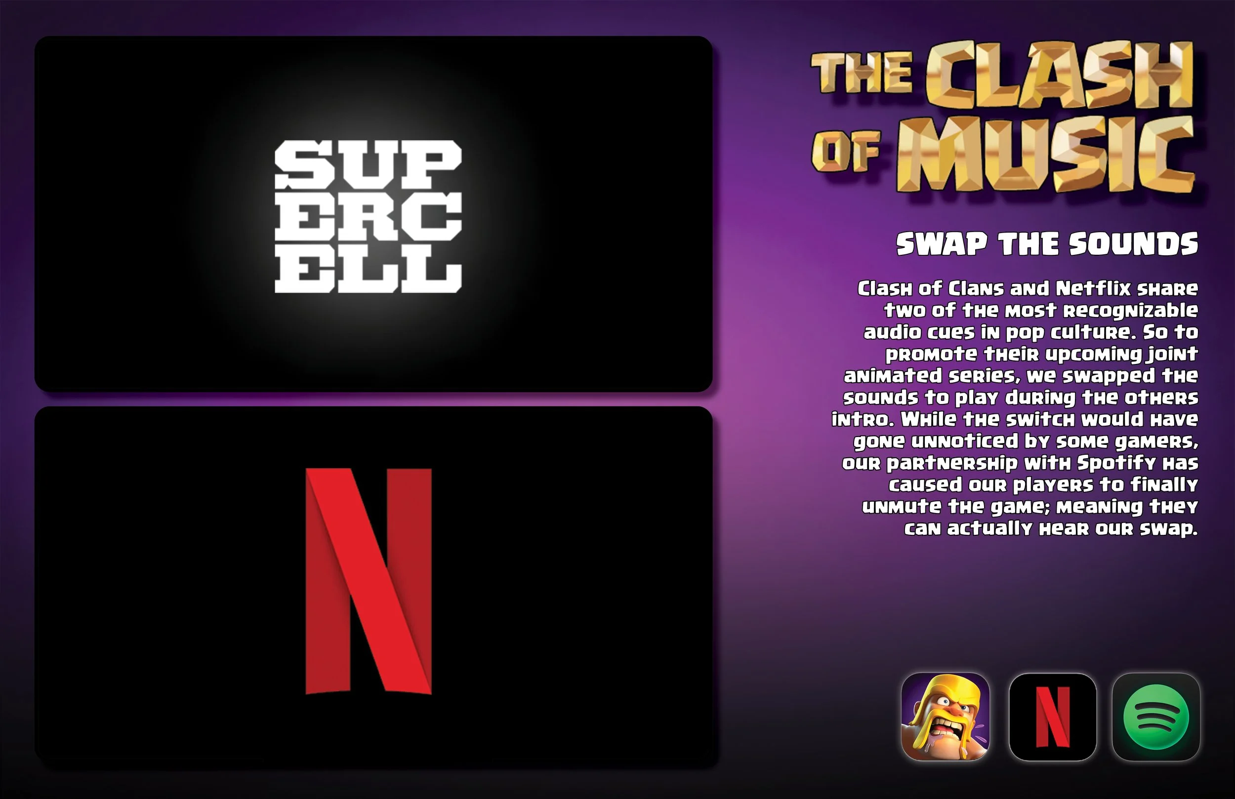 Execution: Integrate Spotify in Clash of Clans so that players can listen to their music in the game. Allow players to set village anthems, songs that play during battle. Now that players have turned their sound back on, we can tease the upcoming Netflix show by adding the “Tudum” to the iconic Clash of Clans intro.